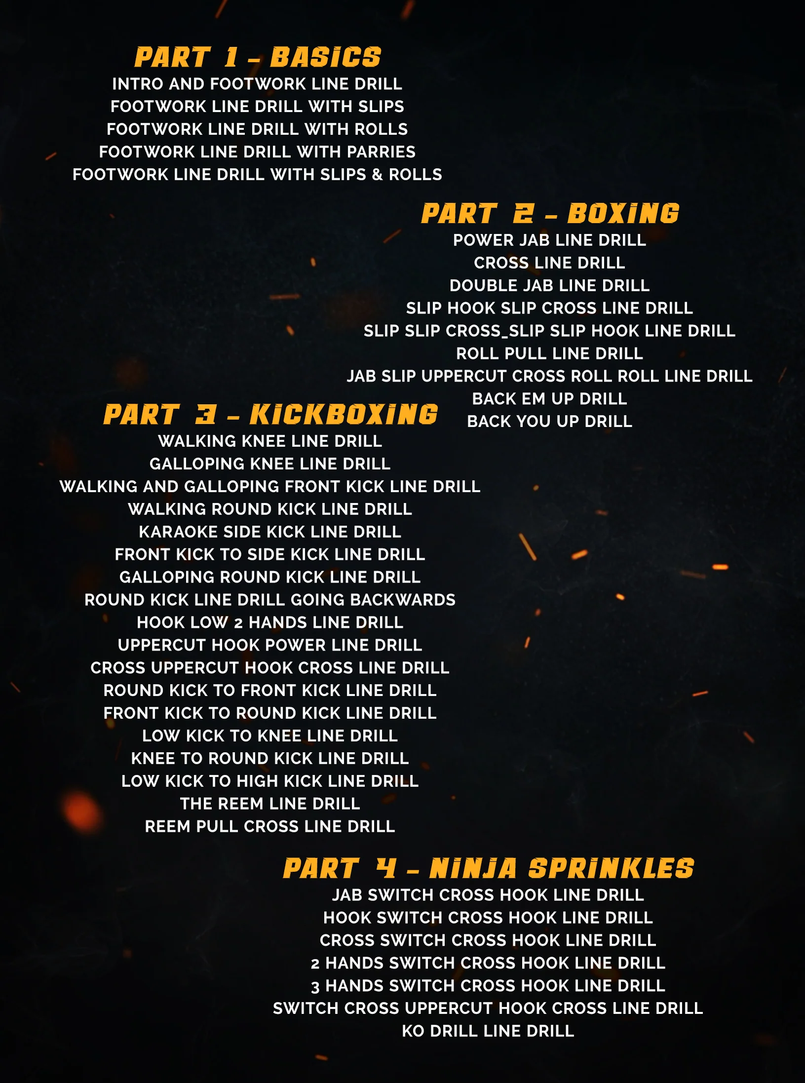 - Add in some of Duane’s favorite Ninja Sprinkles for advanced line drills that his fighters use and specialize in