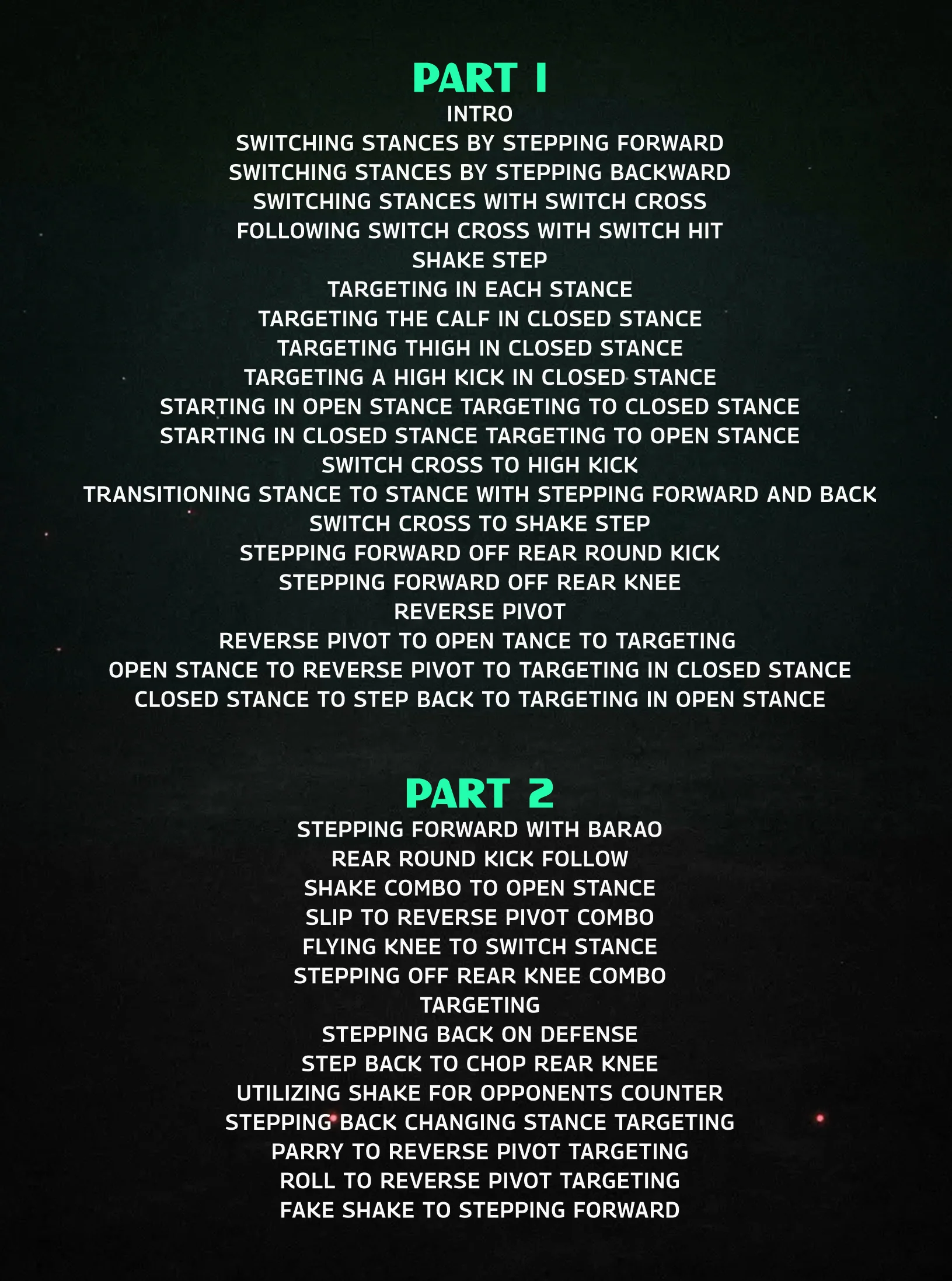 - Target certain strikes such as a calf or thigh kick from both a closed and open stance.