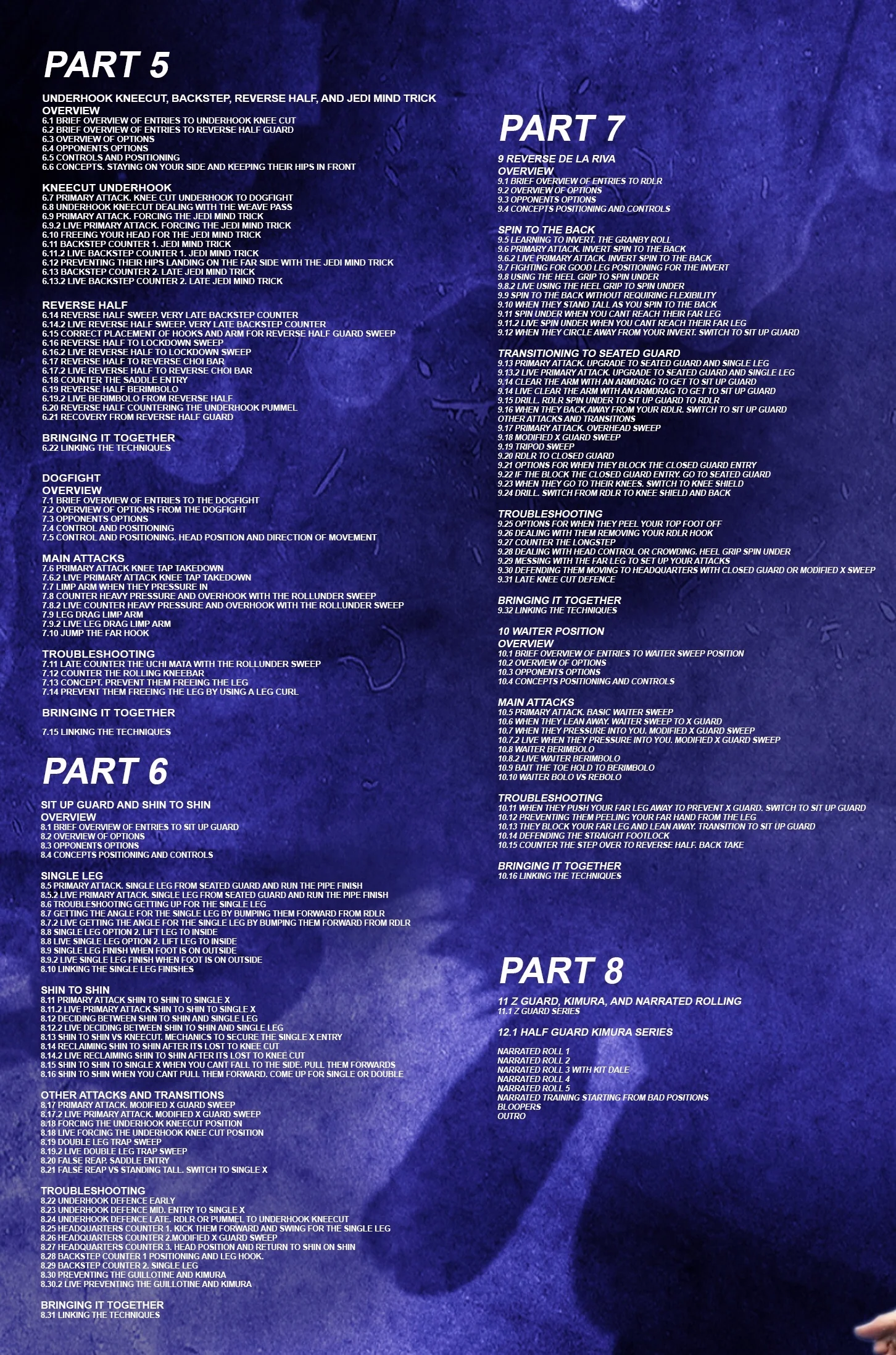 This instructional series begins with the most basic understandings of how Lachlan gets to half guard, how he stays there, and how he makes sure that he is the one in charge of the position. These little battles, the “invisible jiu-jitsu” are usually the difference between your sweeps and submissions working or not working, and being sure you have them as perfect as you can is key. Once your fundamentals are sound, you can begin with the main attacks that any position carries, the counters to what your will see your opponents trying to do, and plenty of troubleshooting against stubborn top players. All along the way, you will be building strategy with Lachlan, working through hsi hierarchy of positions, constantly building on your knowledge base to expand the possibilities.