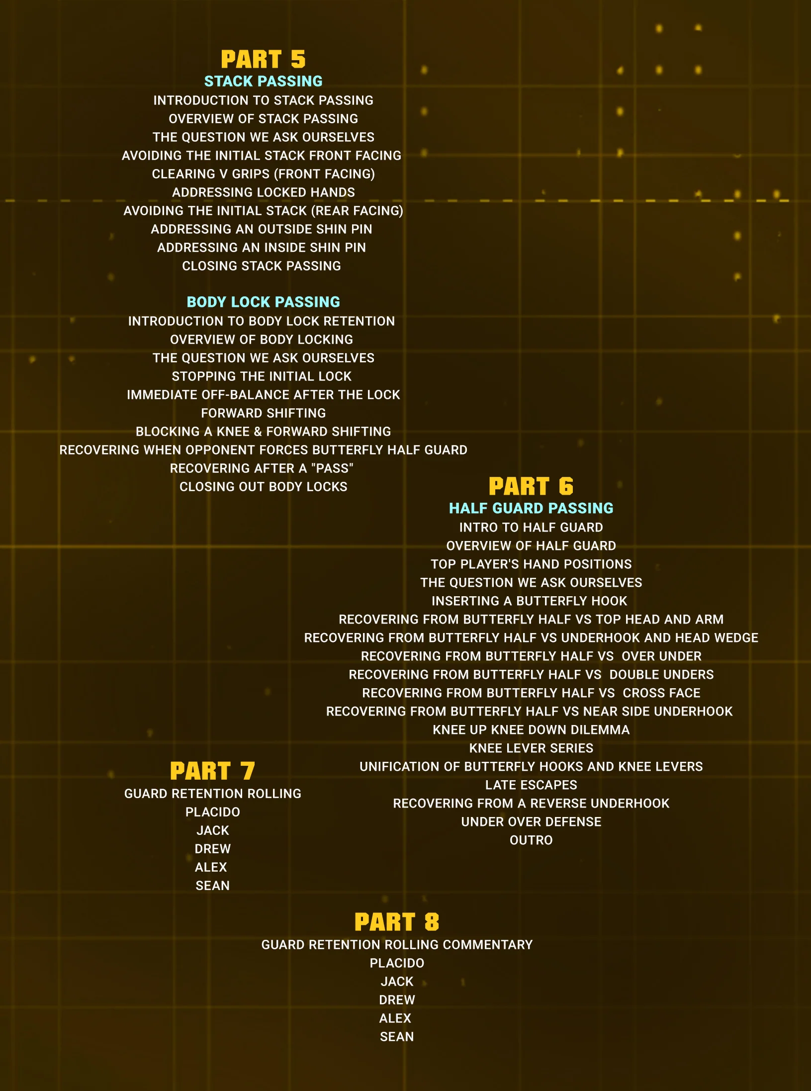 - Stop passes like knee cuts, torreando, stacking, and more with this 8-volume technical instructional.